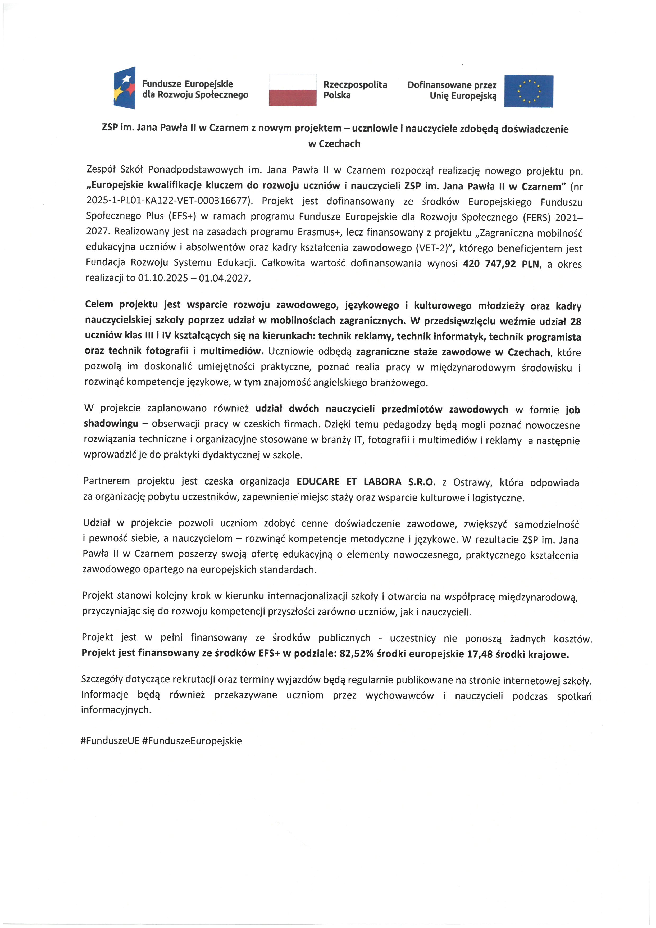 „TWOJA PRZYSZŁOŚĆ Z NASZĄ SZKOŁĄ”